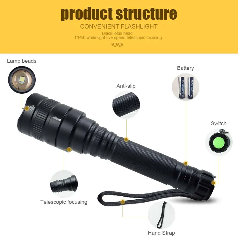 3800 Lumen XHP50 Flashlights Waterproof Flash Light 5 Modes Zoomable LED Torch for Outdoor Lighting