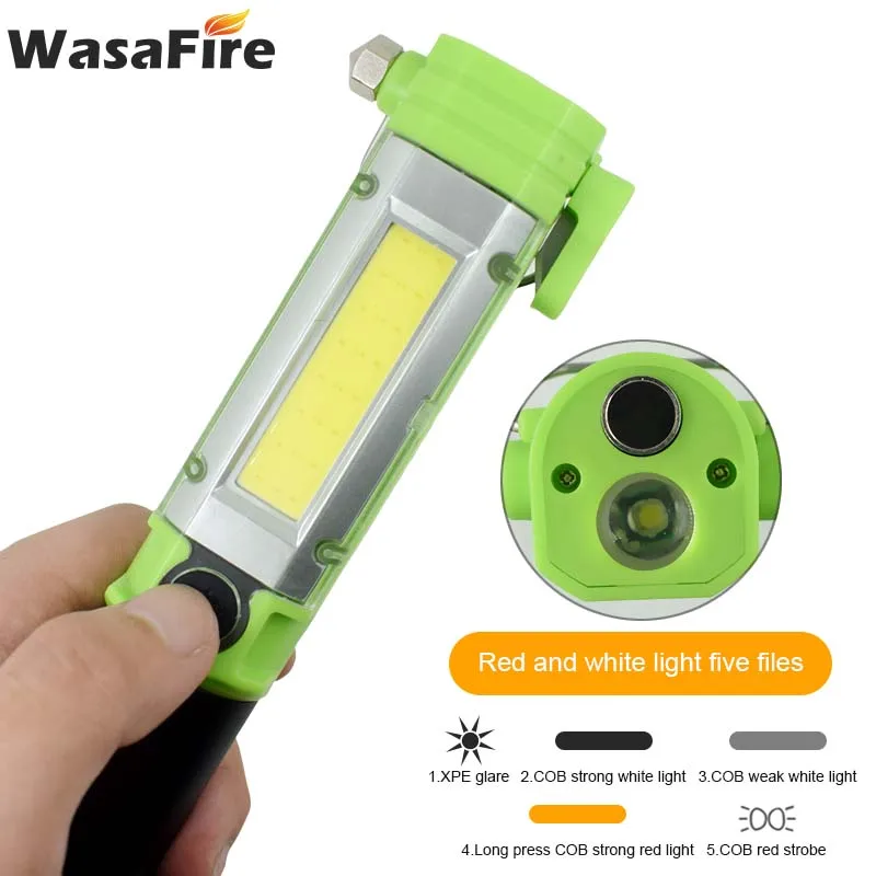 Best Multifunctional LED Flashlight COB Work Light Inspection Lamp Camping Lights with Safety Hammer Cut