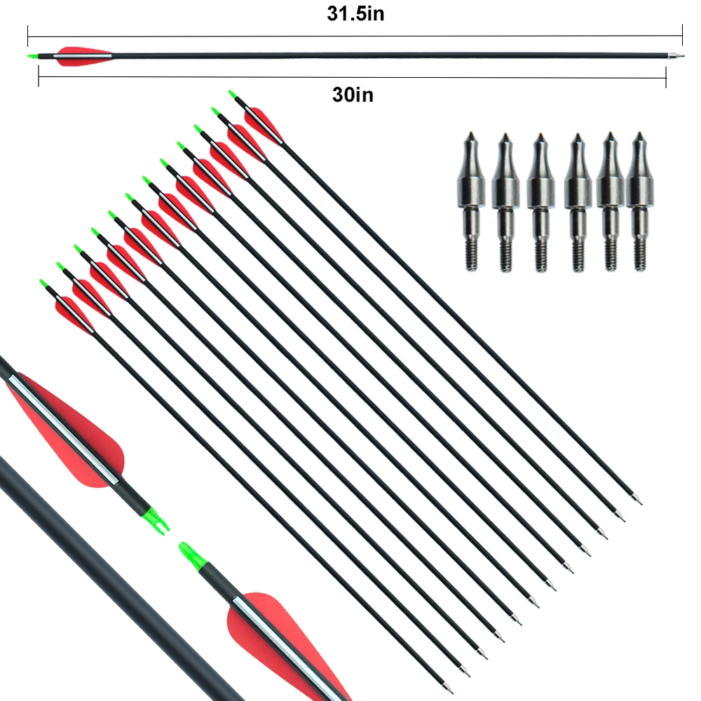 REVIEW TOP SELLER US 6/12/24 pcs Mixed Carbon Arrow 28/30 Inches Spine 500 with Replaceable Arrowhead for Compound/Re