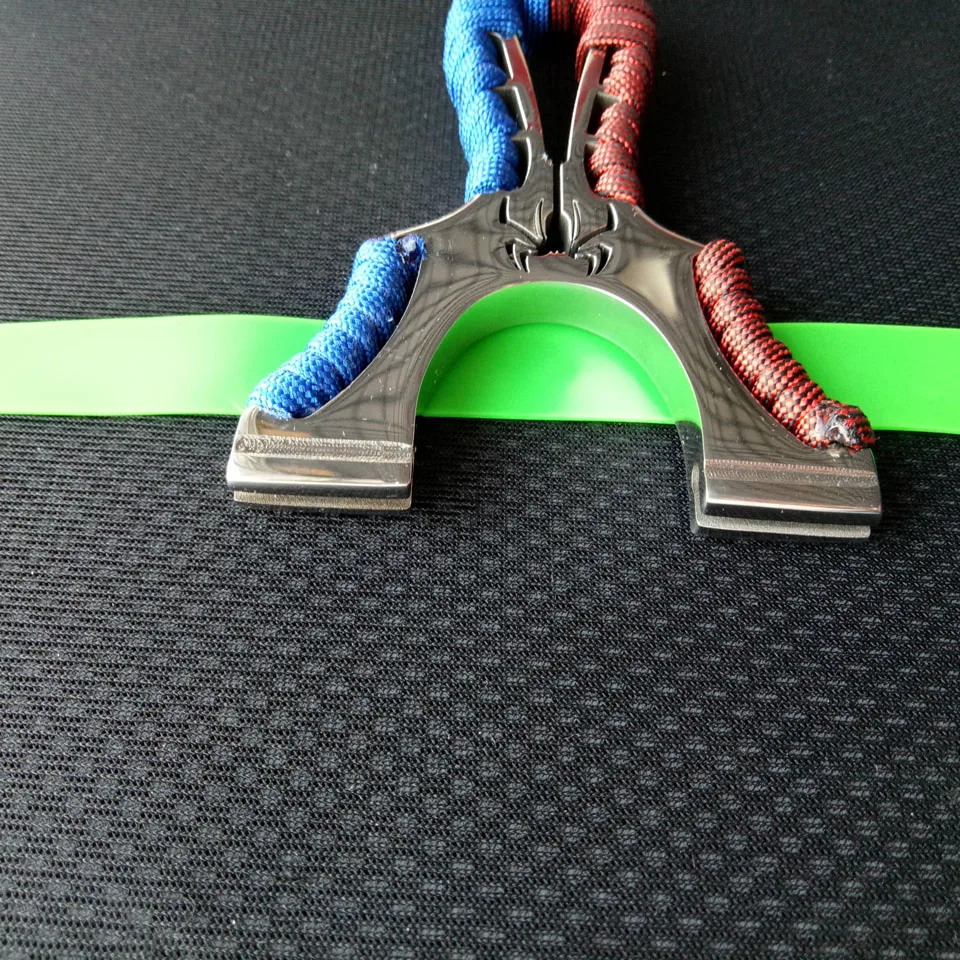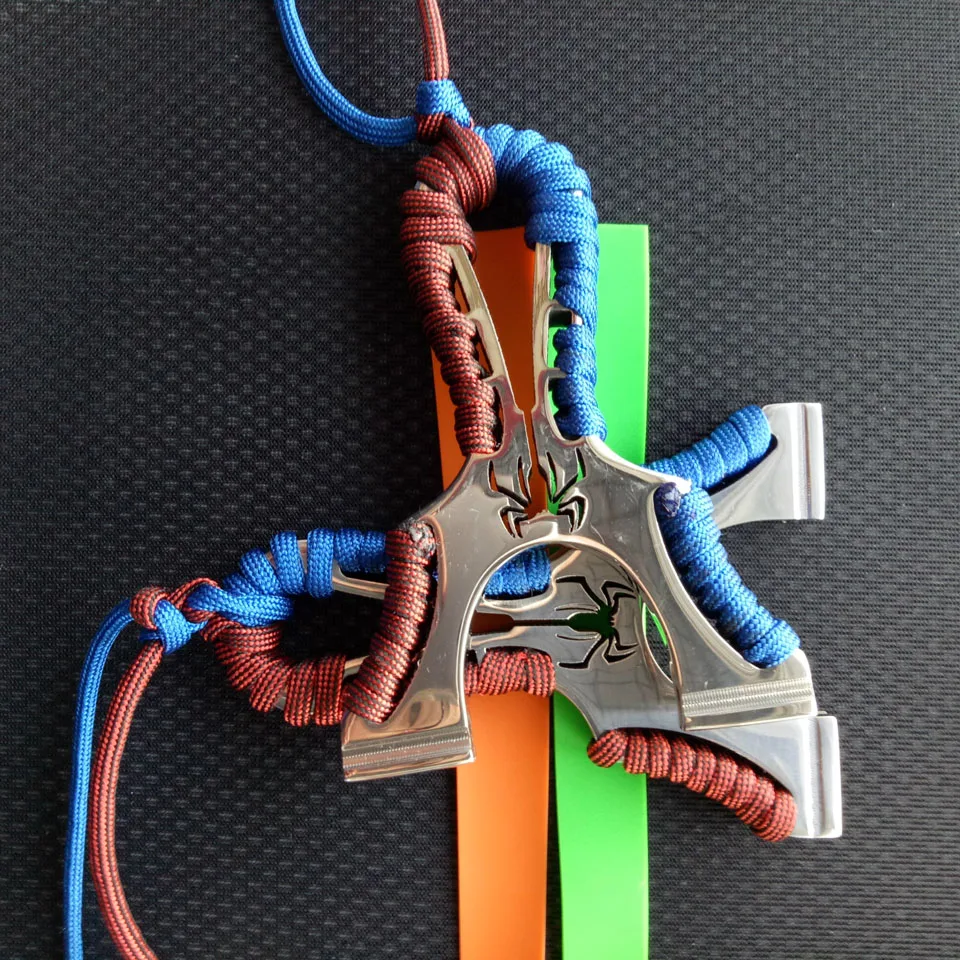 HOT Sale Slingshot in Stainless Steel with Spider Flat Skin and 3 Wrist Rubber Bands fit Outdoor Shoting Hun